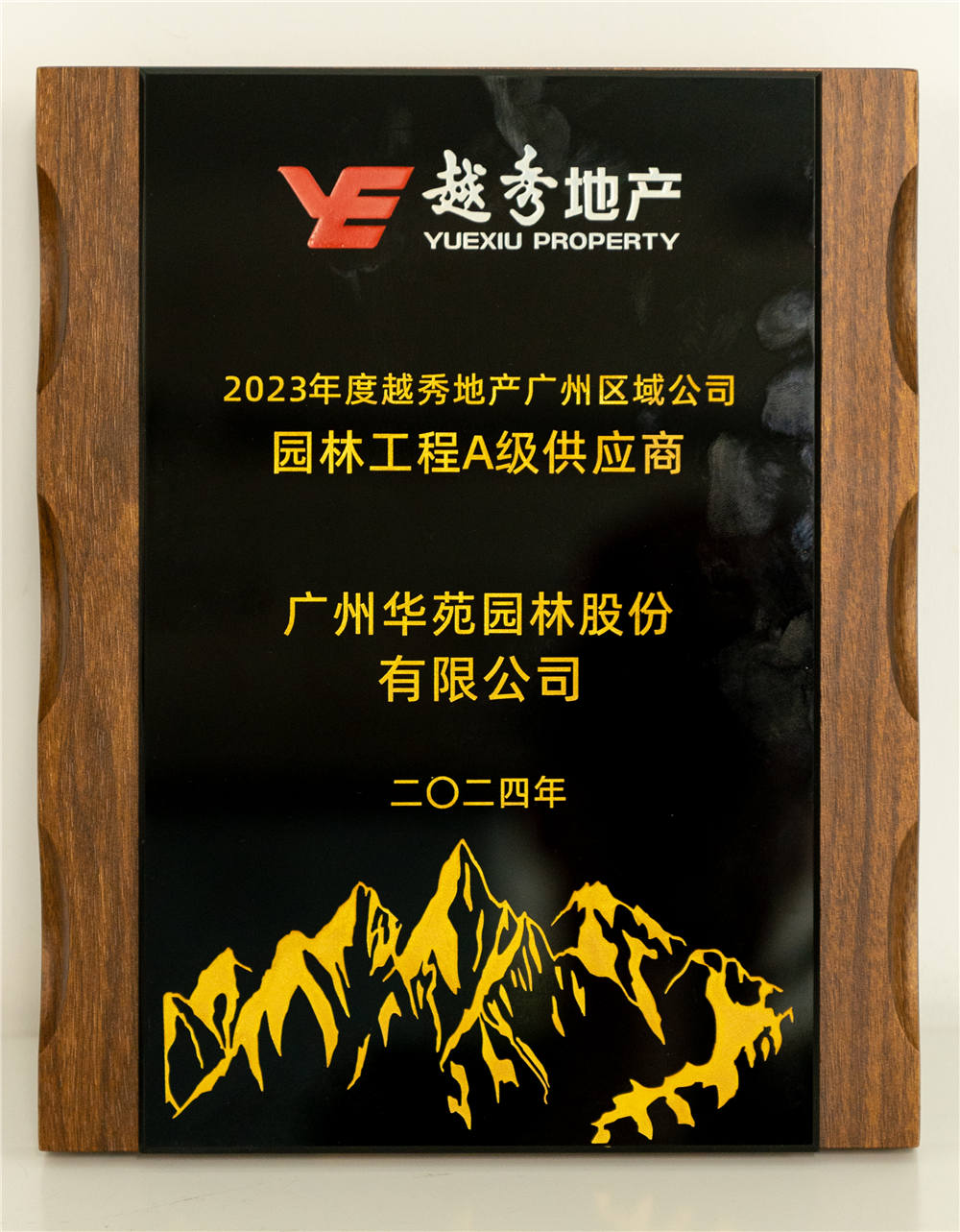 越秀地產廣州公司2023年度園林工程A級供應商獎