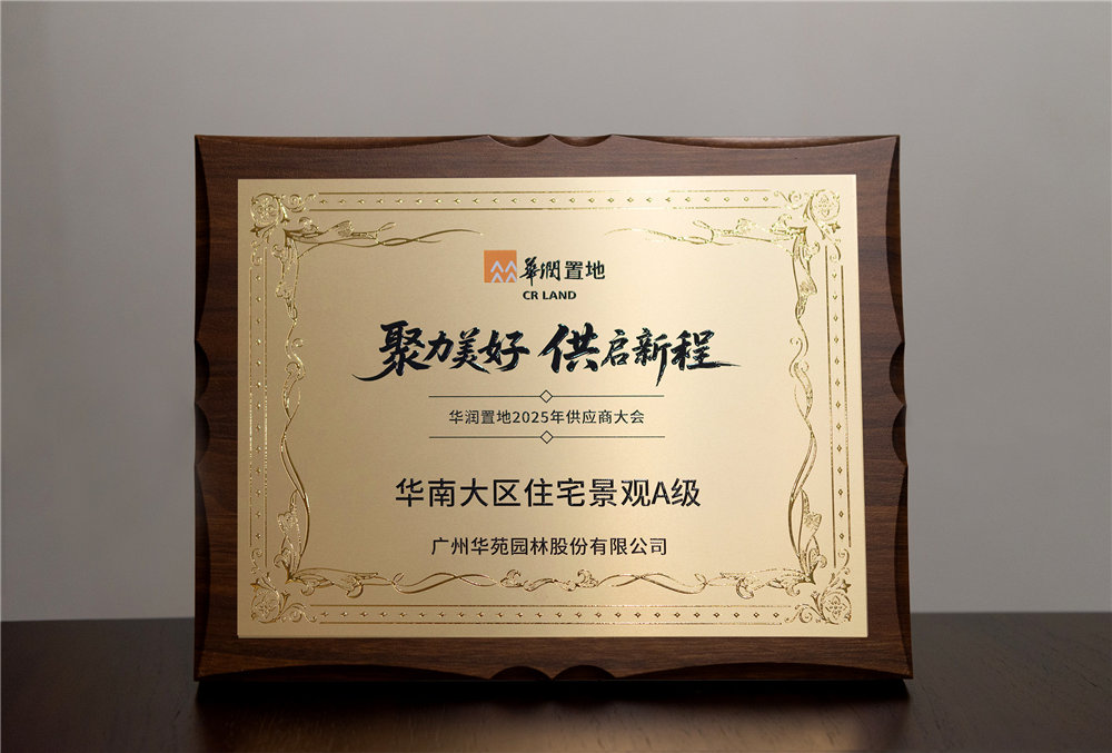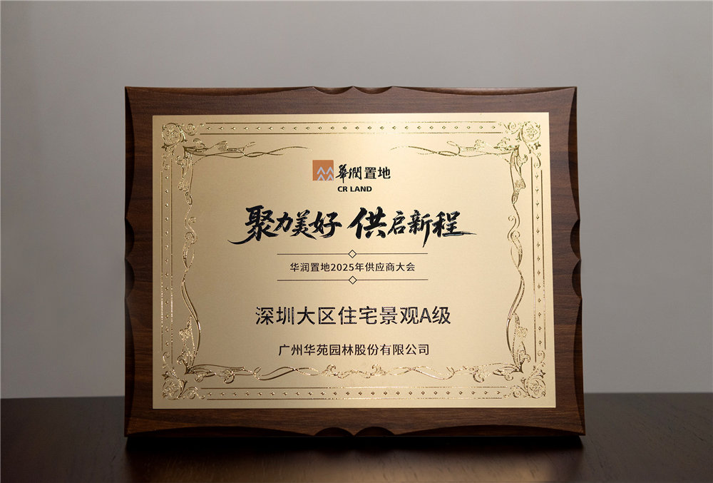華潤置地-2024年度深圳大區住宅景觀A級供應商獎、華南大區住宅景觀A級供應商獎、華東大區住宅景觀B級供應商獎