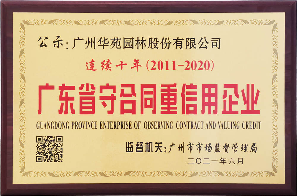 廣東省園林綠化行業誠信等級AAAAA(2014-2020年)