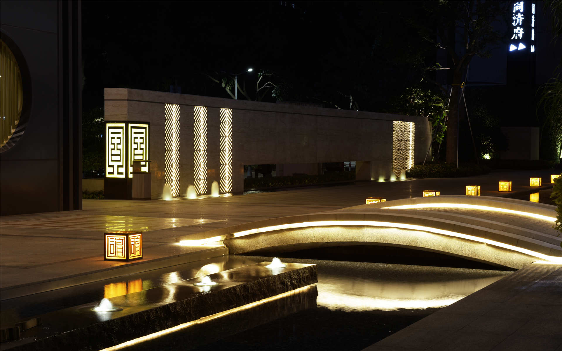 項目設計以佛山著名文昌書院為靈感,采用新中式造園手法,將禪城特色文化沉淀為硯墨,以學府世家、文脈傳承為筆毫,將傳統元素符號融入至景觀當中,描畫出厚載嶺南底蘊的風情景觀。