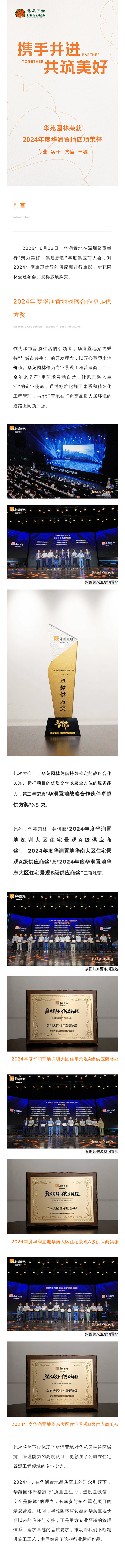 華苑園林連續三年榮膺華潤置地戰略合作卓越供方獎等四項大獎